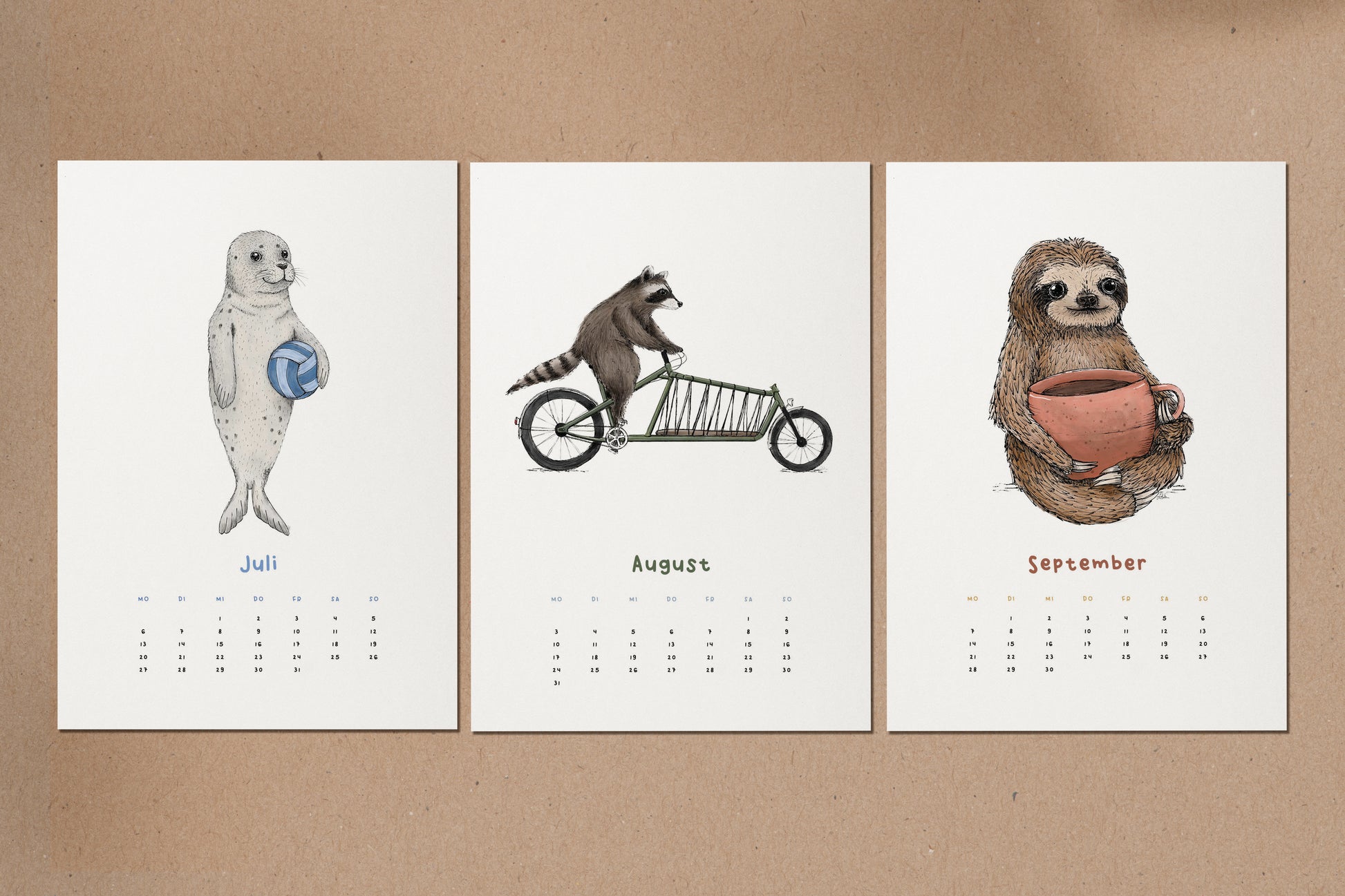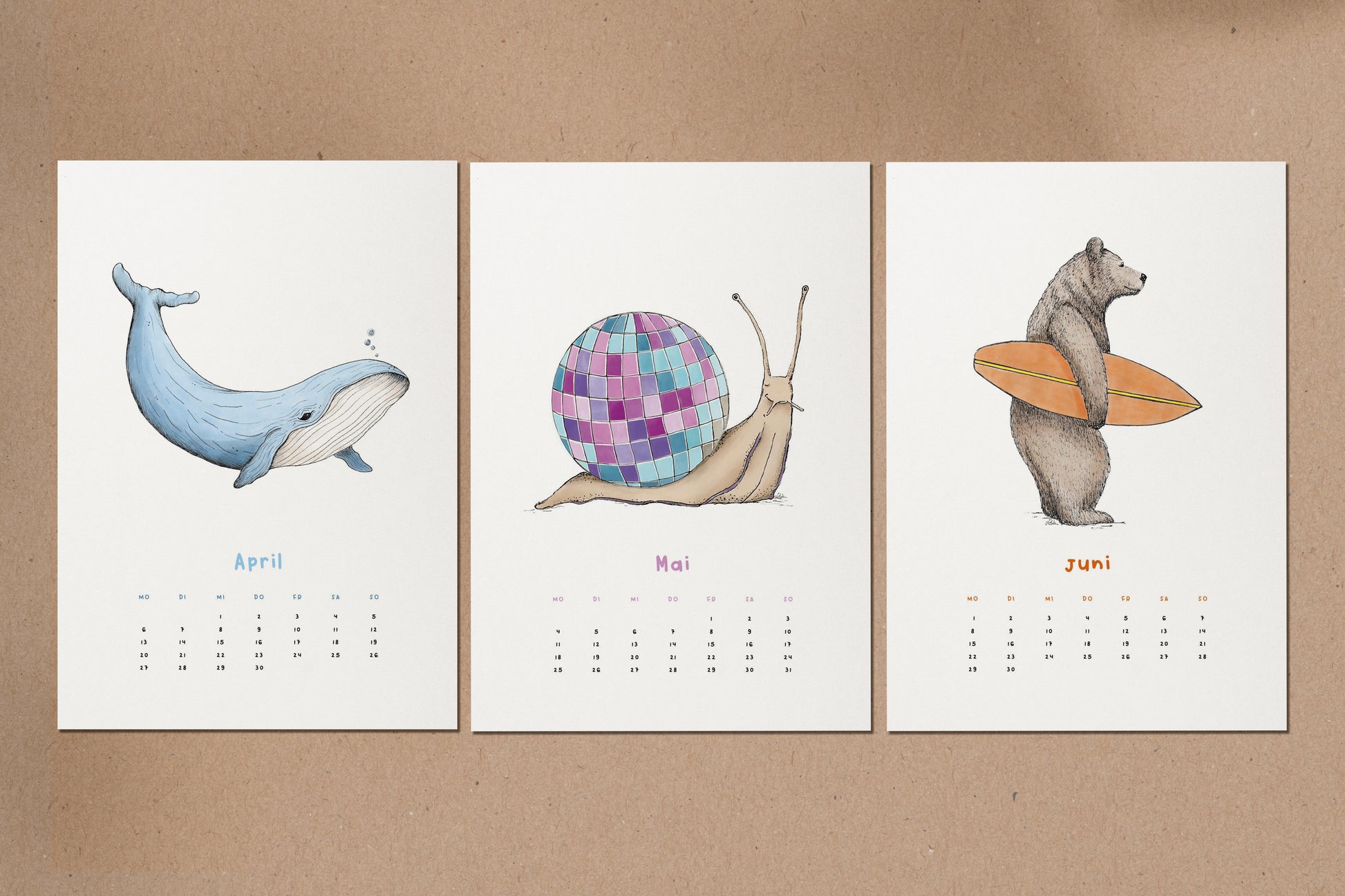 2. Kalenderblätter + Klemmbrett: 1 Titelblatt + 12 Kalenderblätter + Klemmbrett