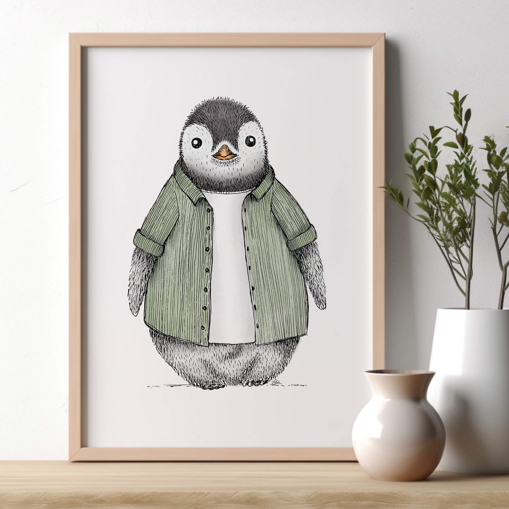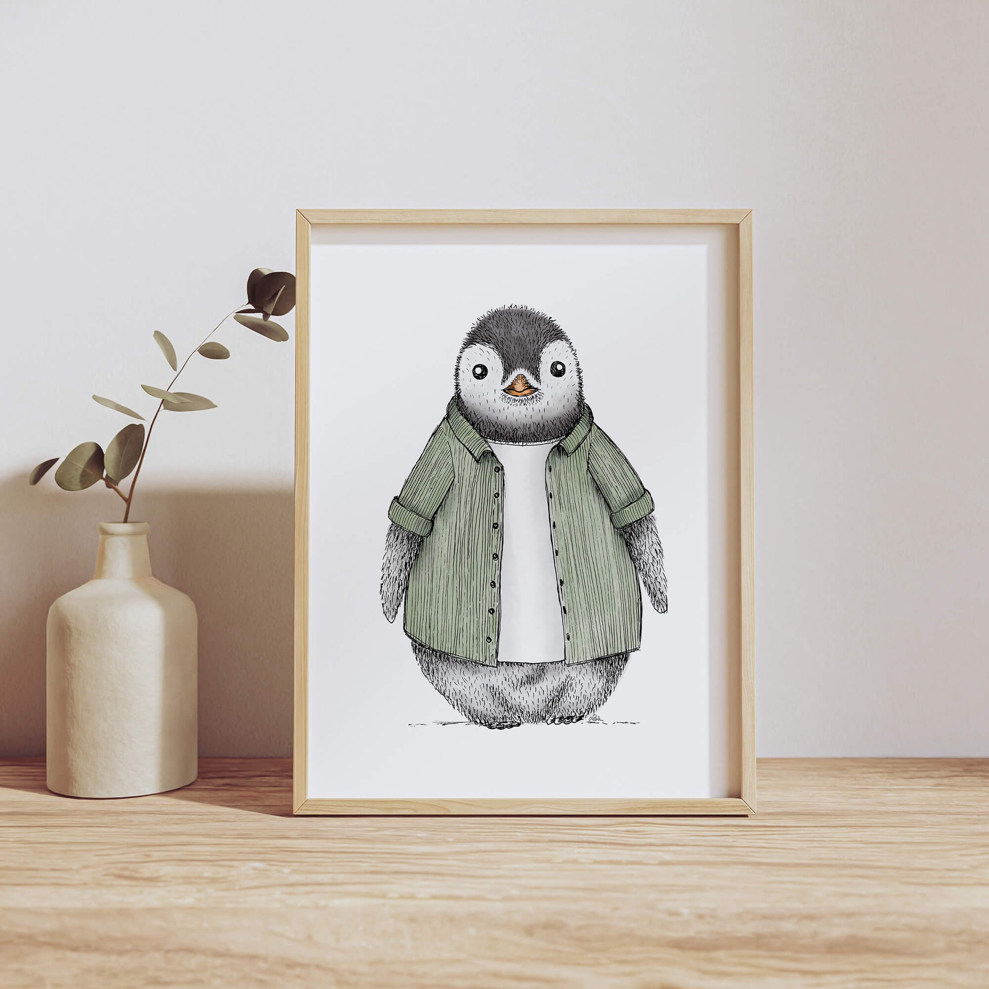 POSTER | Kunstdruck | Pinguin Fabi Cordhemd